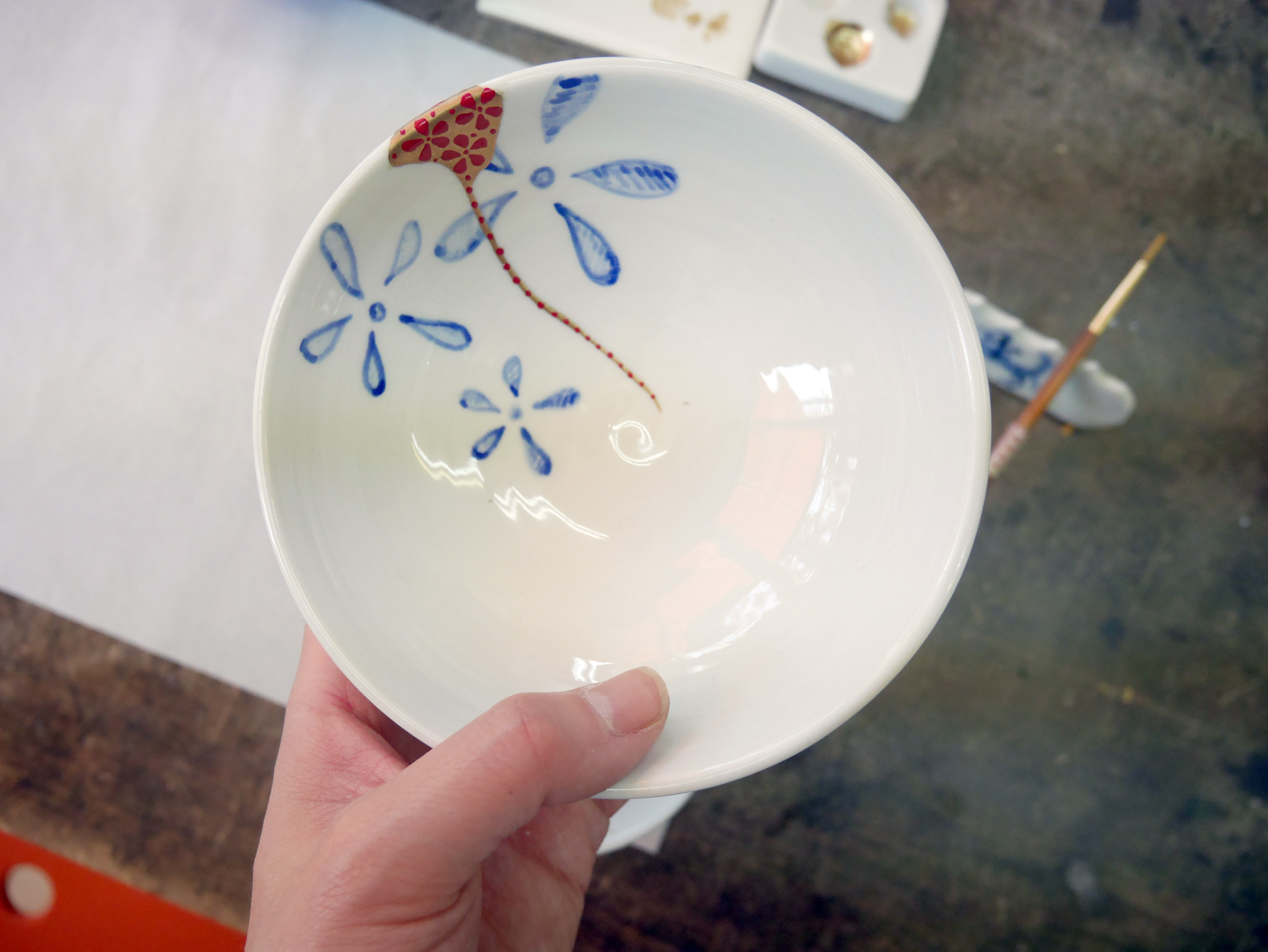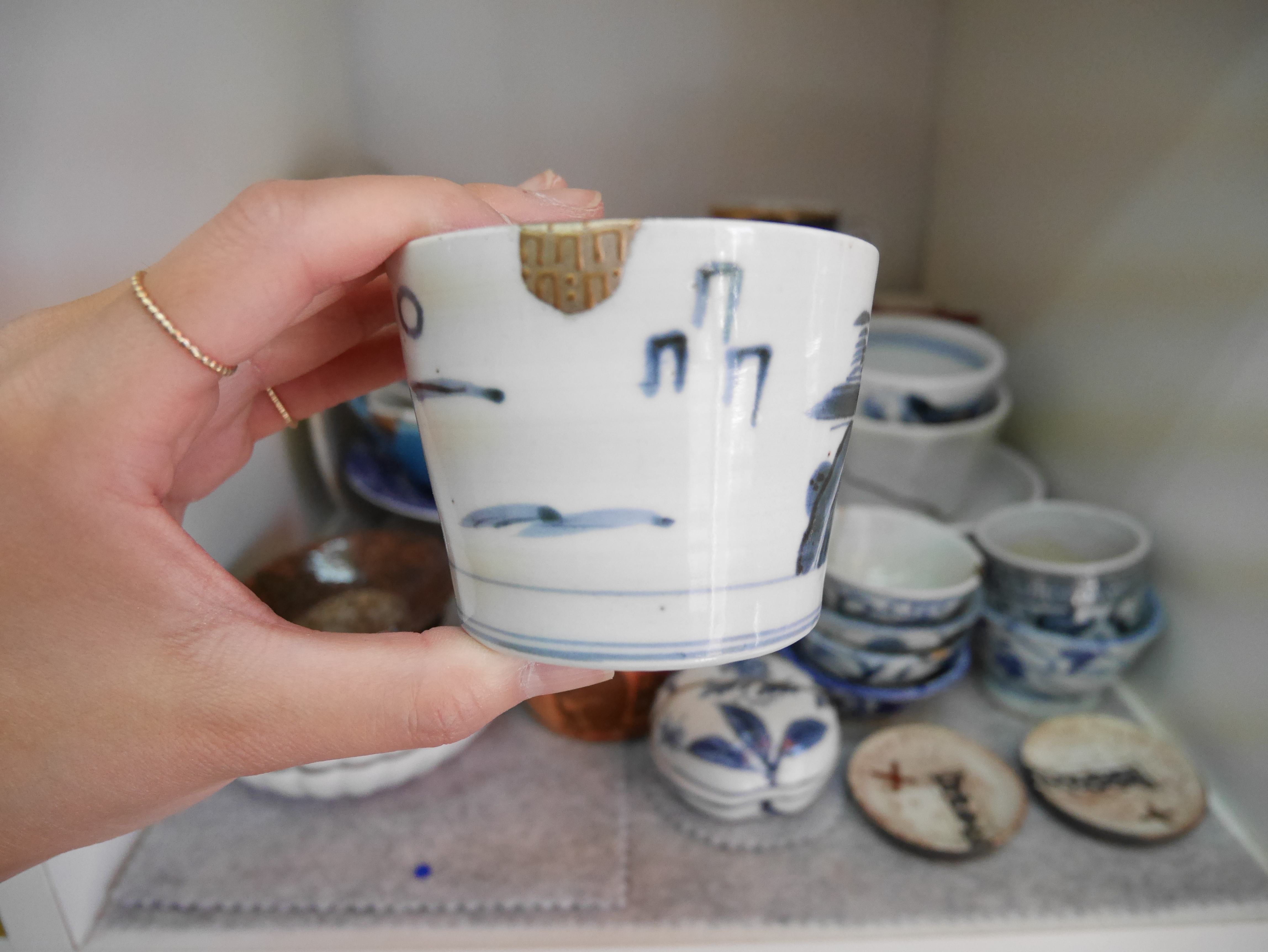 I attended a workshop taught by Yoshiichiro and Yoshiko Kuge, two veterans in the ceramics world. I chose to repair a traditional Japanese tea cup because it reminded me of a tea set my grandparents owned.